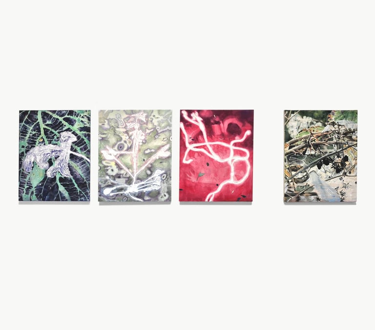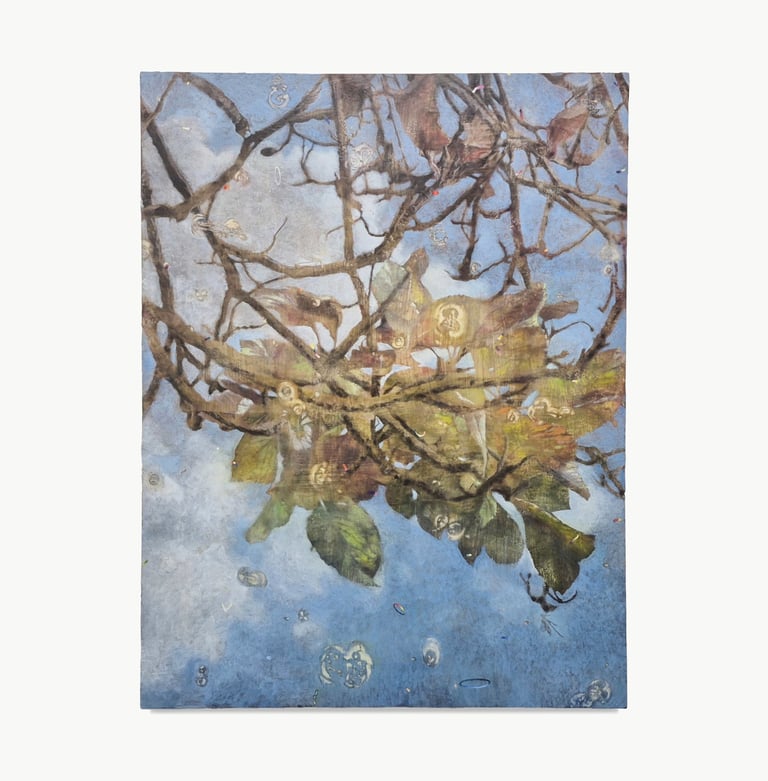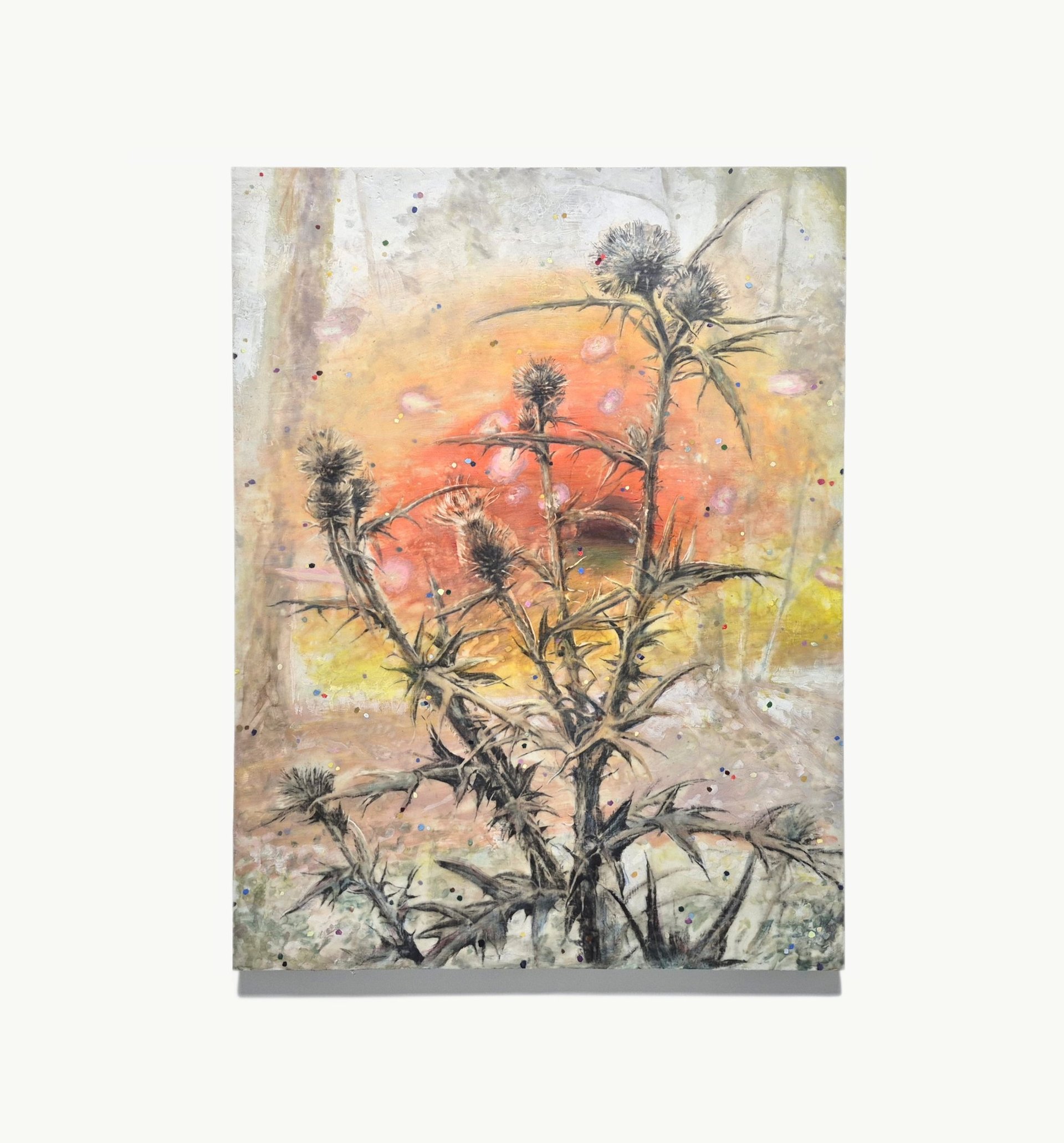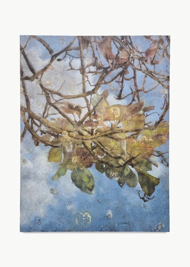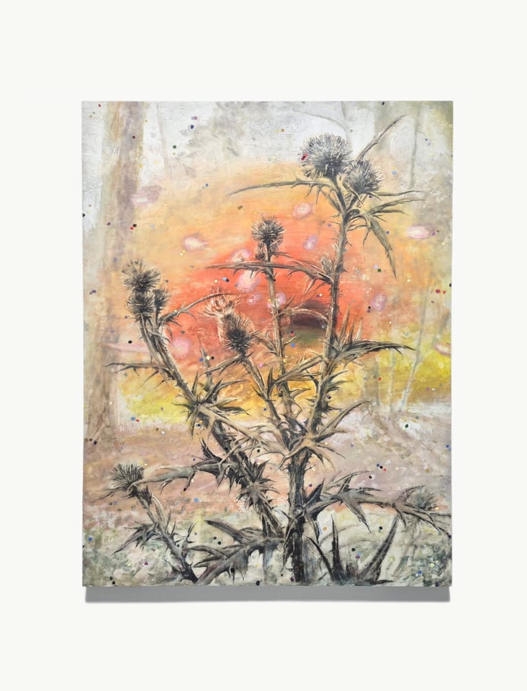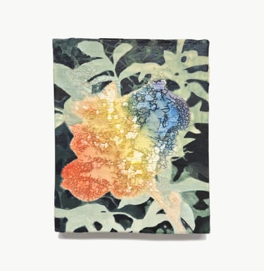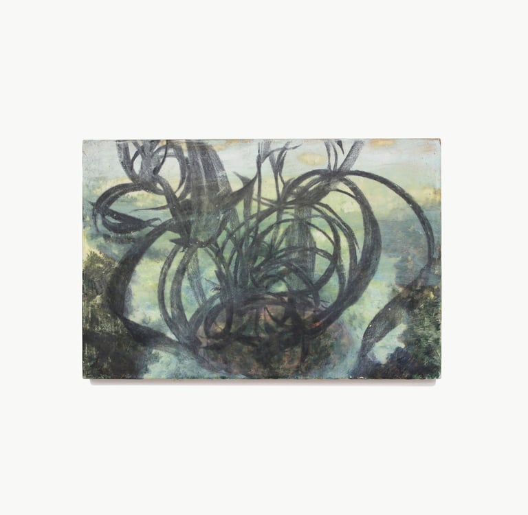2023. 24 x 16 cm, huile, gouache, végétaux, vernis et papier sur toile
